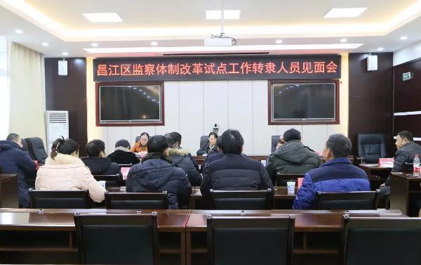 1月8日下午,昌江区召开区监察体制改革转隶人员见面会。区委常委、纪委书记方群,区检察院检察长程家敏出席会议并讲话。