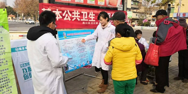 1月18日,昌江区卫计委、疾控中心及红光社区卫生服务站在老汽车站门口联合开展基本公共卫生服务项目宣传服务月活动。